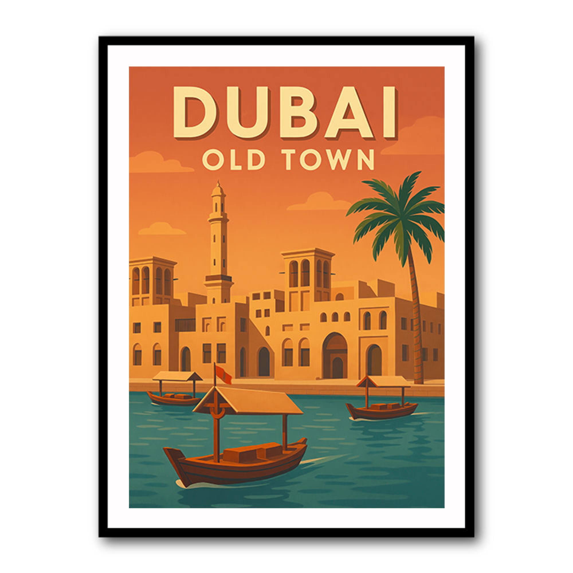 3. Old Dubai & Cultural Heritage PrintsWhile the skyline represents progress, Old Dubai embodies charm and tradition. From the Abra boats of the Creek to the Al Fahidi Historical District, this side of the city connects us to the UAE’s roots. Wall art inspired by heritage landmarks brings warmth and texture to your space. Earth-toned frames, vintage photography, and sepia filters pair perfectly with traditional interiors, cafés, or offices that celebrate authenticity. At Artworks.ae, our artists capture this unique blend of old and new, giving you the chance to showcase Dubai’s full story on your walls. Browse the Travel Posters Collection |