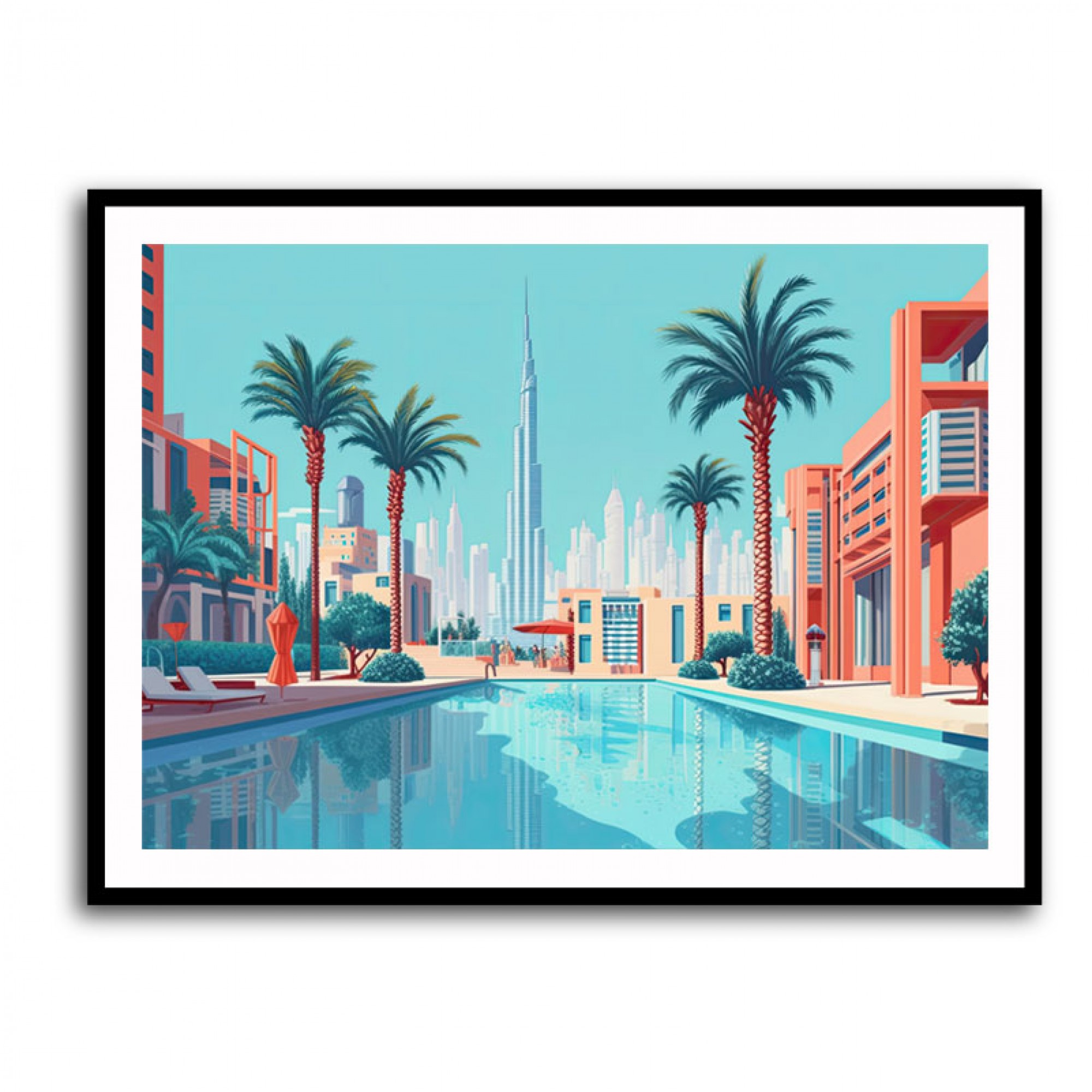 2. Palm Jumeirah — The Icon of Coastal LuxuryNothing says “Dubai living” quite like Palm Jumeirah — the world’s most recognisable man-made island. Artwork featuring the Palm brings a sense of serenity and exclusivity to your interior. Consider pairing it with light oak or white frames to match neutral, coastal-inspired interiors. A soft aerial photograph of the Palm adds balance and calm to bedrooms or lounge spaces, while abstract interpretations work beautifully in modern apartments.