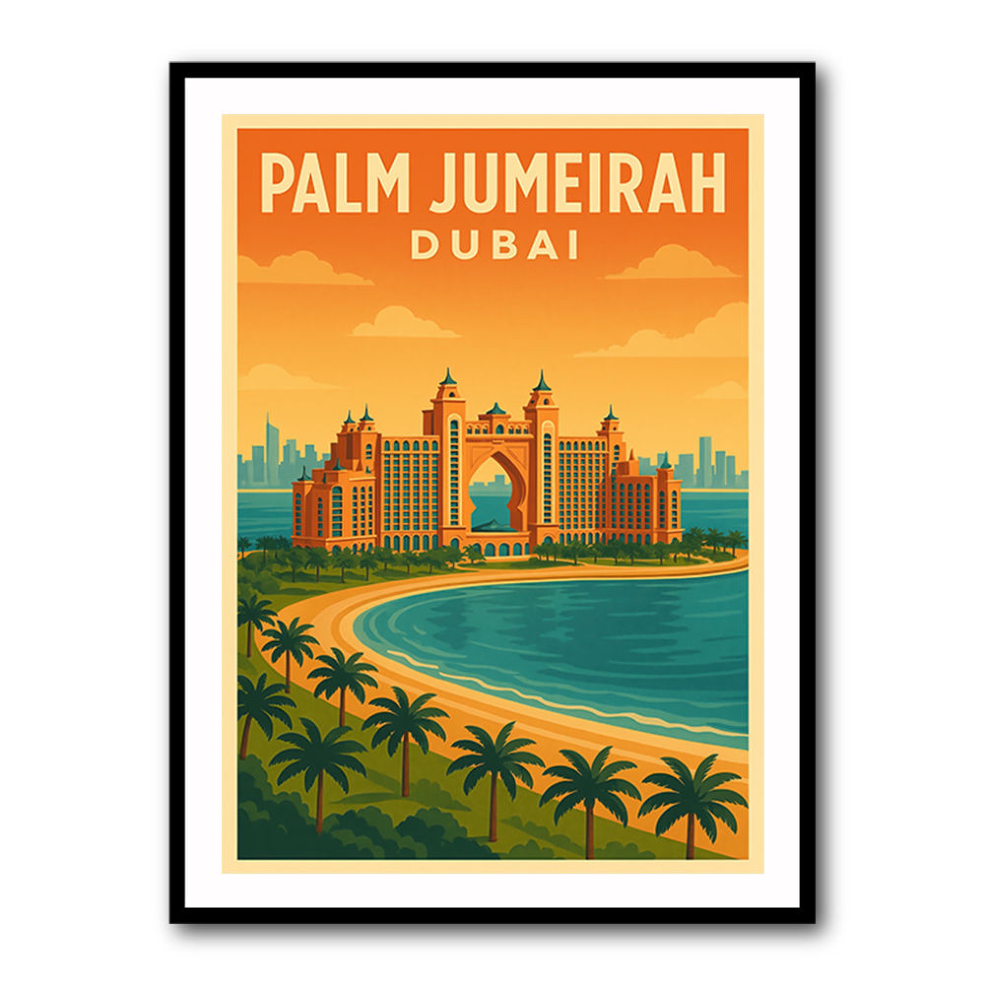 Tip: Complement your Palm Jumeirah art with subtle gold or sand-toned accents to echo the warmth of Dubai’s coastline. Browse the Travel Posters Collection |